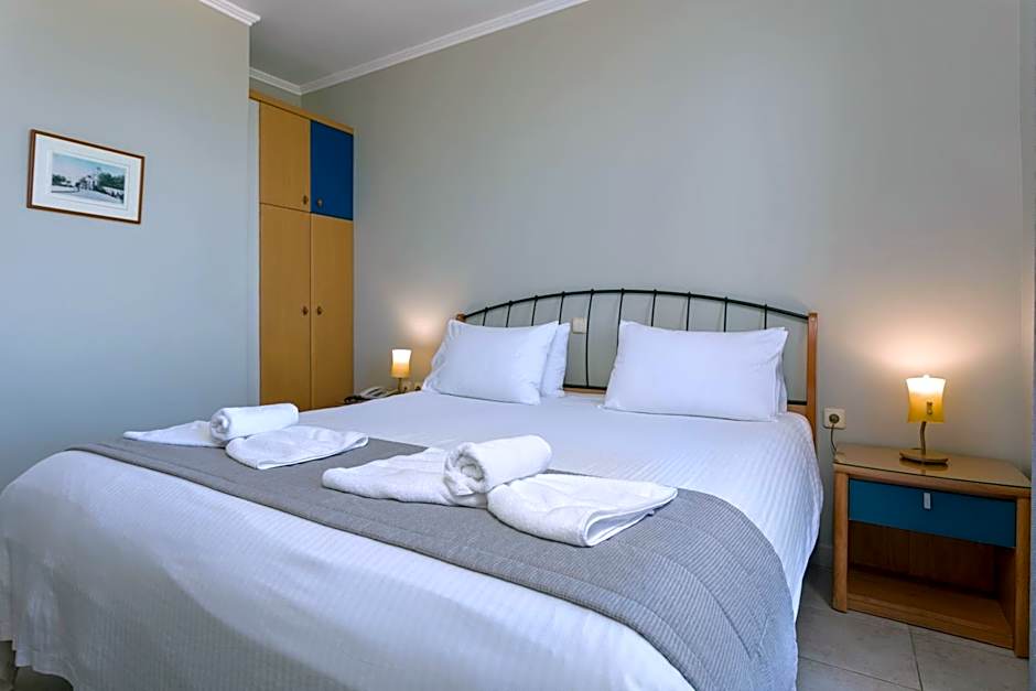 Opening to 2 balconies with side Ionian Sea view, this air-conditioned apartment is fitted with Coco Mat mattresses and pillows, and has a fully equipped kitchen with dining area. Free toiletries and a TV are provided.